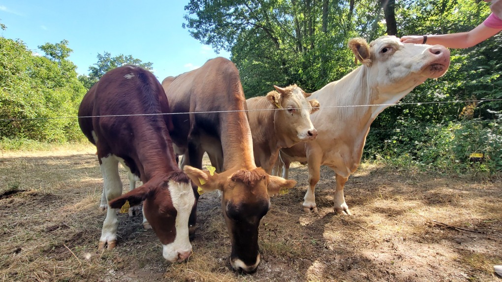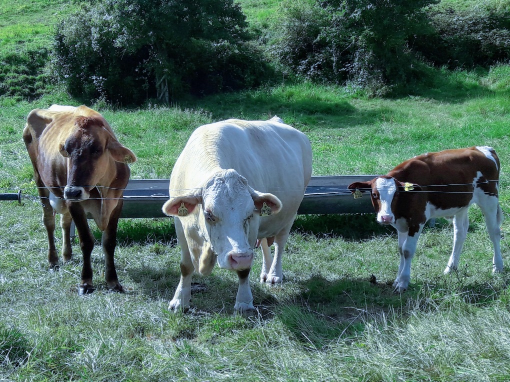 Schneeweißchen war schon 12 Jahre alt, als sie zu Trudi und Balduin auf die Weide durfte. Geplant war, dass sie ihr Kalb bekommt, es groß ziehen durfte und dann im Folgejahr geschlachtet werden sollte. Da haben wir Paten Schneeweißchen frei gekauft und in die KuhFamilie aufgenommen. Schneeweißchen ist eine ganz zutrauliche und liebe Kuh, mit der längsten Zunge🙂.