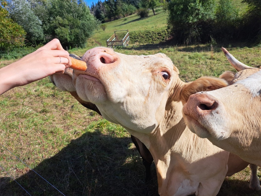 Ein toller Landwirt hat Trudi und Balduin als Pensionskühe aufgenommen. Und tolle Paten unterstützen sie dabei. Gemeinsam haben wir noch eine ältere Kuh freigekauft, Schneeweißchen, die nun auch ein "nutztierfreies" Leben führen kann.